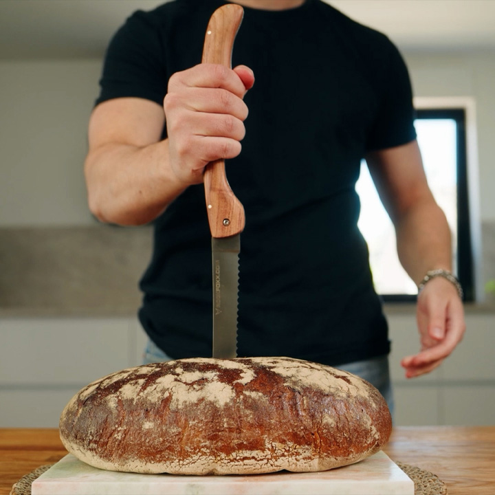 Sägt selbst grosse und krosse Brote mühelos in glatte Scheiben. Nichts wird zerquetscht oder zerrissen.
