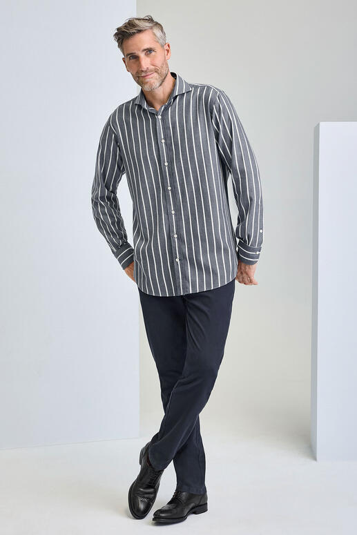Das seltene Jacquardstreifen-Hemd mit wärmendem Wollanteil.