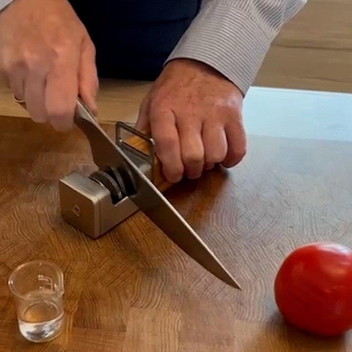 Der Diamant-Messerschärfer, mit dem TV-Koch Lucki Maurer seine Messer schleift. Jetzt bei Pro-Idee.