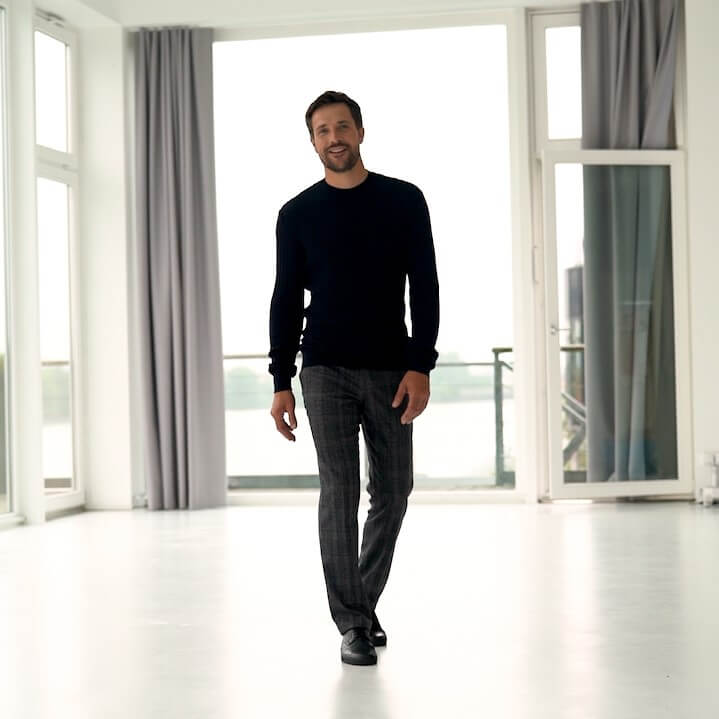 Durch seine besonders feinen Maschen wirkt Ihr neuer Pullover trotz seiner Lässigkeit erstaunlich elegant – und trägt sogar unter einem Sakko nicht auf.