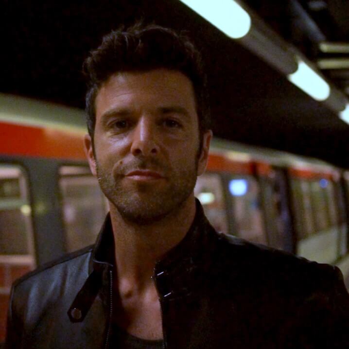 Mann im Hirschleder-Blouson lächelt in einer U-Bahn-Station